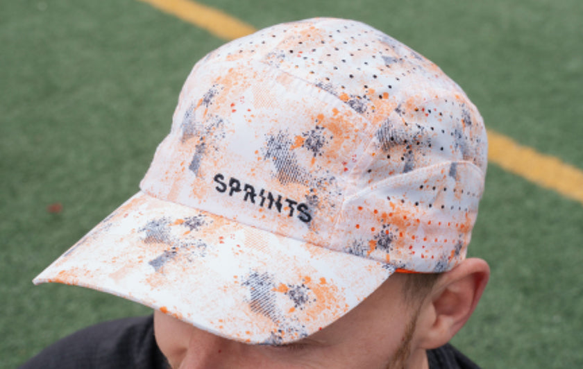 Who said running has to be serious? With cool graphics and colorful prints, the Sprints Running Hat adds a splash of personality to every stride! The moisture-wicking, light polyester fabric includes mesh inserts that keep you cool and dry. If you're looking to break away from the boring running wardrobe, slap on a Sprints Running hat and you're ready!