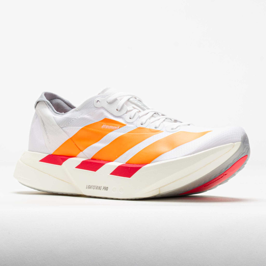 Designed to break records, the adidas Adizero Adios Pro 4 helps you reach the pinnacle of your potential. This neutral racing shoe propels competitive runners who want speed and efficiency. Carbon-infused ENERGYRODS 2.0 provides stiffness for seamless transitions. In the midsole, a new rocker geometry improves running efficiency. A double layer of ultralight LIGHTSTRIKE PRO provides energetic cushioning for long distances. Enjoy a no-slip transition during toe-off from the Continental™ rubber outsole. Built to reach the podium, the adidas adizero adios pro 4 brings out your best on race day!