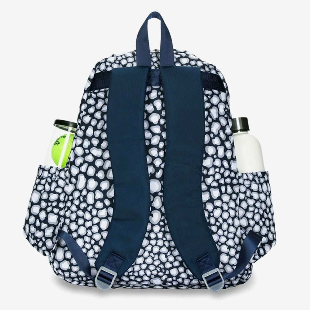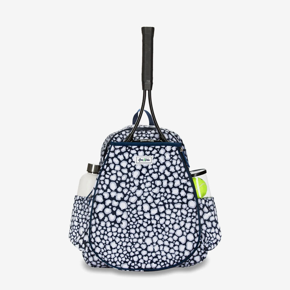A racquet bag that means business, just like you! The new Ame and Lulu Game On Tennis Backpack takes over for the tennis bags of old, providing fashionable ladies with a stylish bag to take to and from the courts. This backpack features an exterior zippered pocket that can fit up to two tennis racquets as well as exterior side pockets for a water bottle or cans of tennis balls. Inside, ladies will find slip pockets and zippered pockets for organizing small essentials. Pick your favorite pattern from a collection of trendy designs.