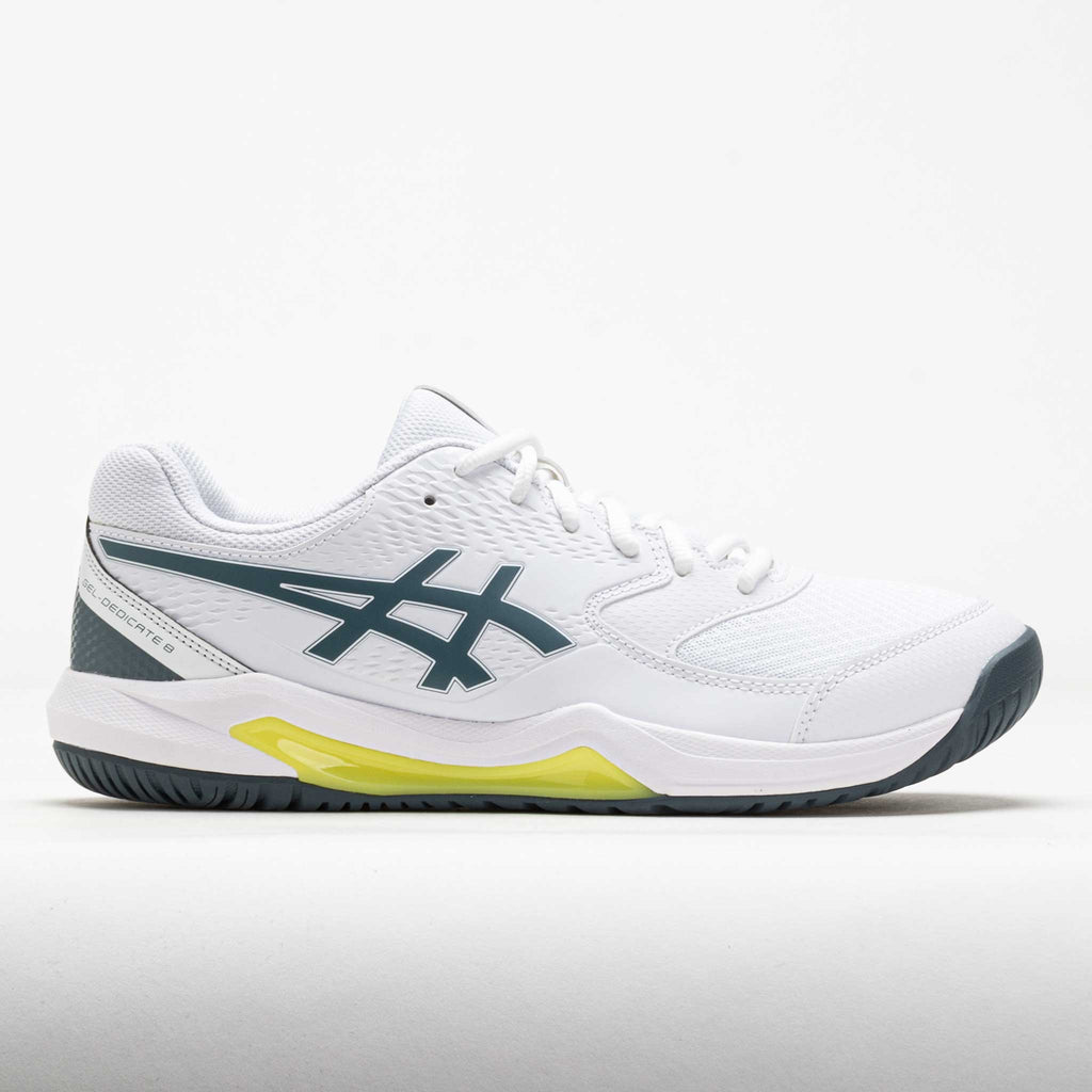 Stay secure while chasing down shots in the ASICS GEL-Dedicate 8. This tennis shoe features a durable upper with synthetic leather overlays for protection. TRUSSTIC® technology and a wrap-up outsole improve stability to let your feet move freely on the court. When you need your mind to stay centered on the match, let the ASICS GEL-Dedicate 8 keep you grounded!