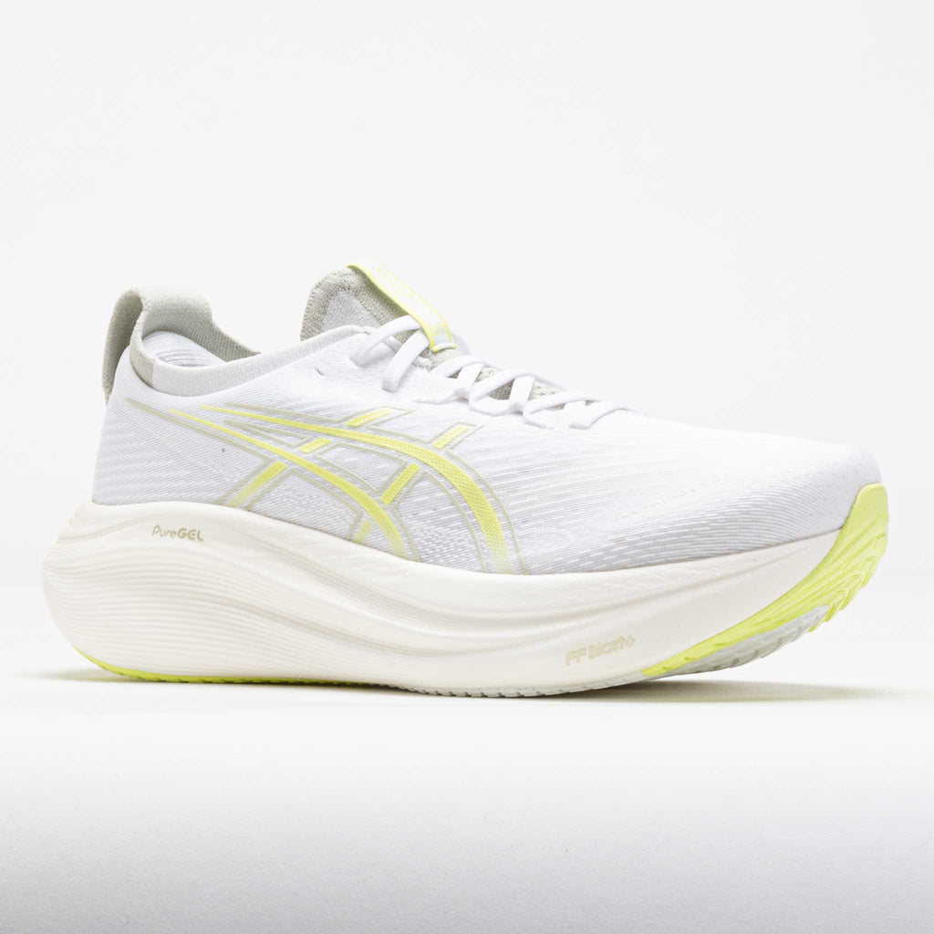 Find your comfort zone in the ASICS GEL-Nimbus 27! This neutral running shoe blends plush and eco-friendly materials for a smooth ride. Stay comfortable while you cruise through daily training in the jacquard mesh upper. Enjoy smooth landings on the PureGEL™ midsole, while bio-based FF BLAST™ PLUS ECO foam adds softness. Soft, light and eco-friendly, the ASICS GEL-Nimbus 27 keeps your feet in the clouds!