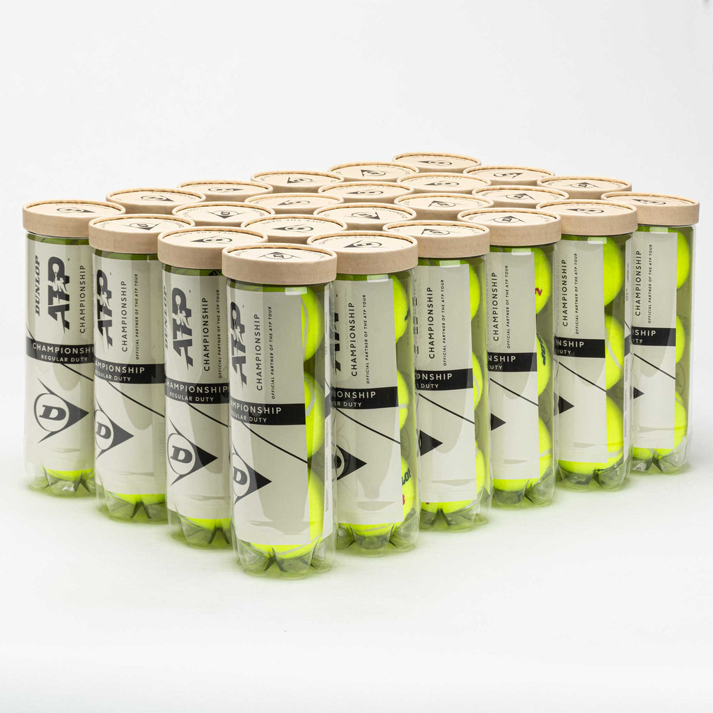 The Dunlop ATP Championship Regular Duty Ponte Vedra LOGO BALL 24 Cans feature tennis balls officially endorsed by the ATP World Tour. These tennis balls are ideal for club and recreational players for use on clay and indoor courts. HD Pro Core and Fluoro Cloth technology combine to create a consistent feel that lasts match after match.