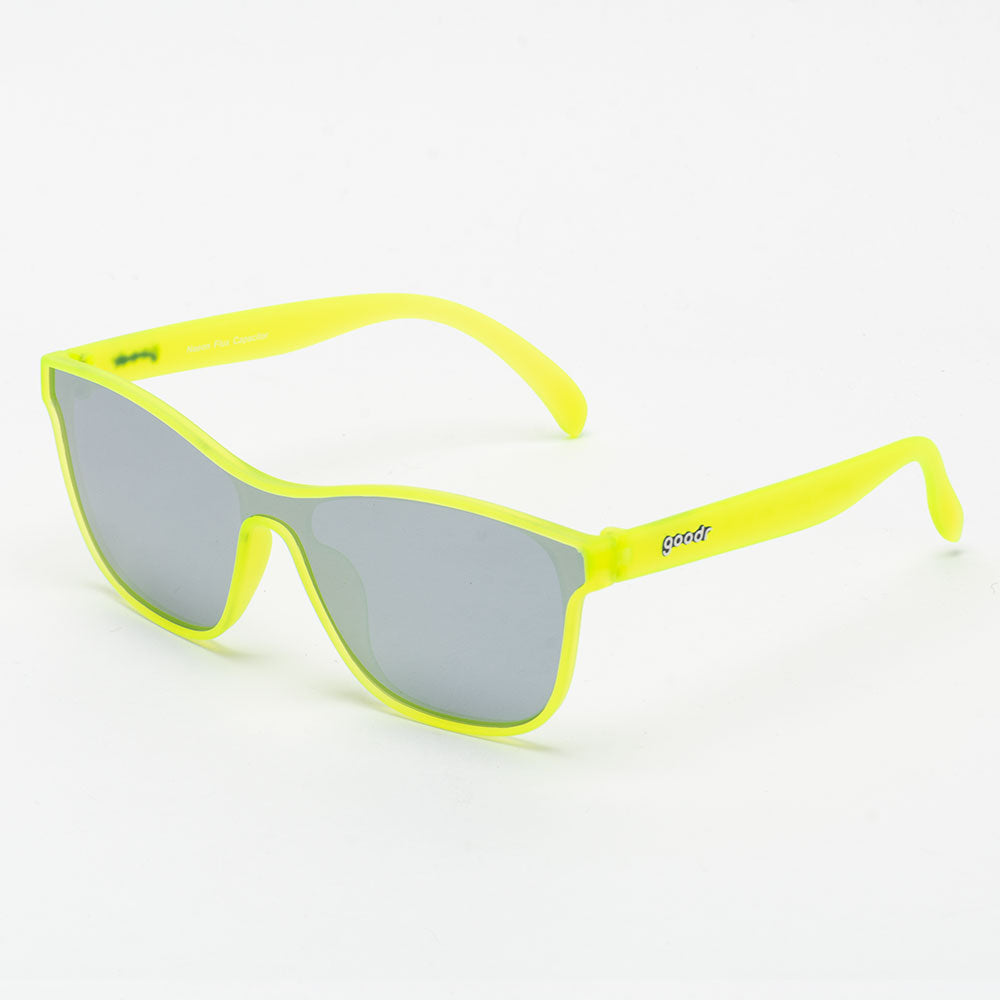 Meet the Goodr VRGs! These reflective sunglasses feature a sleek, polarized lens that won't slip or bounce during your workouts. The stylish design emits futuristic vibes, whether you're running laps or crushing sets. The Goodr VRGs reduce glare and block out harmful UV rays, so nothing will distract you from having a good time. Switch up your style with various color options!
