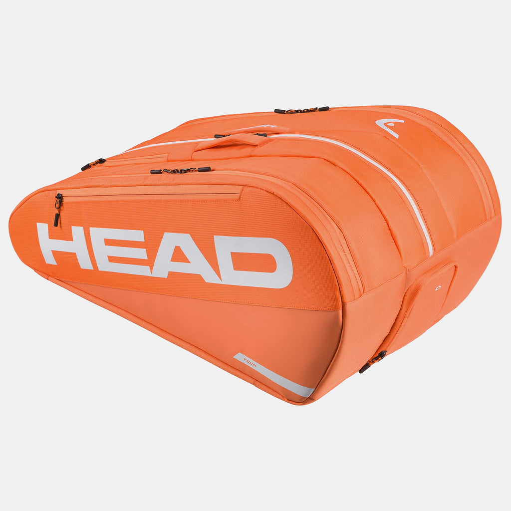 The HEAD Tour Racquet Bag XL 12 Pack provides ample space for serious tennis players. Hold up to 12 racquets in the three main compartments, one with CCT+ climate control technology for protection. The two-way carry system allows for easy transportation, while the integrated shoe compartment and extra pockets offer convenient organization. Made with eco-friendly materials, the HEAD Tour Racquet XL 12 Pack is a stylish and practical choice!