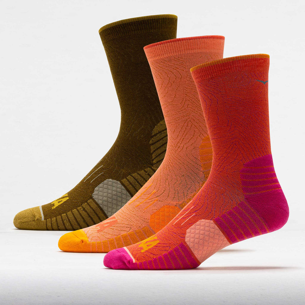 Stock up for daily activities with the HOKA Crew Run Sock 3 Pack! These vibrant socks are an awesome option for running, walking or hiking.
