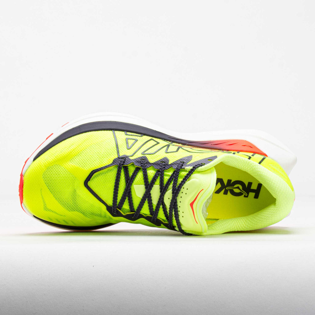When the trail calls for speed, answer it in the HOKA Rocket X Trail! This trail racing shoe features an aggressive rocker and H-shaped carbon fiber plate to propel your stride on race day. Stay cool while you blaze the beaten path in the lightweight mesh upper. Cruise gravel road at top speeds under the lightweight, minimal outsole. The responsive, dual-layer midsole provides energy return while the carbon fiber plates propel you forward. Light, fast and grippy, the HOKA Rocket X Trail prevails over rugged terrain!