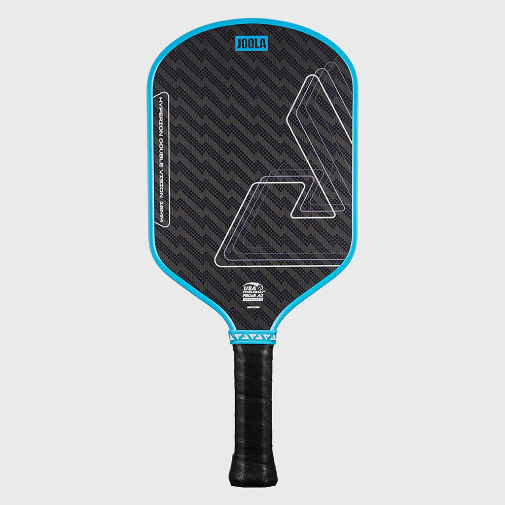 Finesse the competition with the JOOLA Hyperion Double Vision 16mm! This pickleball paddle builds on the aerodynamic shape by maximizing speed and precision. Swing with pinpoint control thanks to the soft yet durable Aramid Surface. Enjoy long-lasting comfort and reduced fatigue from the vibration-dampening SLK Film. Thermoforming in the handle and neck adds stability and flexibility, translating impact into effortless power when it matters most. Whether you're a weekend warrior or a rising competitor, the JOOLA Hyperion Double Vision 16mm helps you take balls out of the air with confidence!