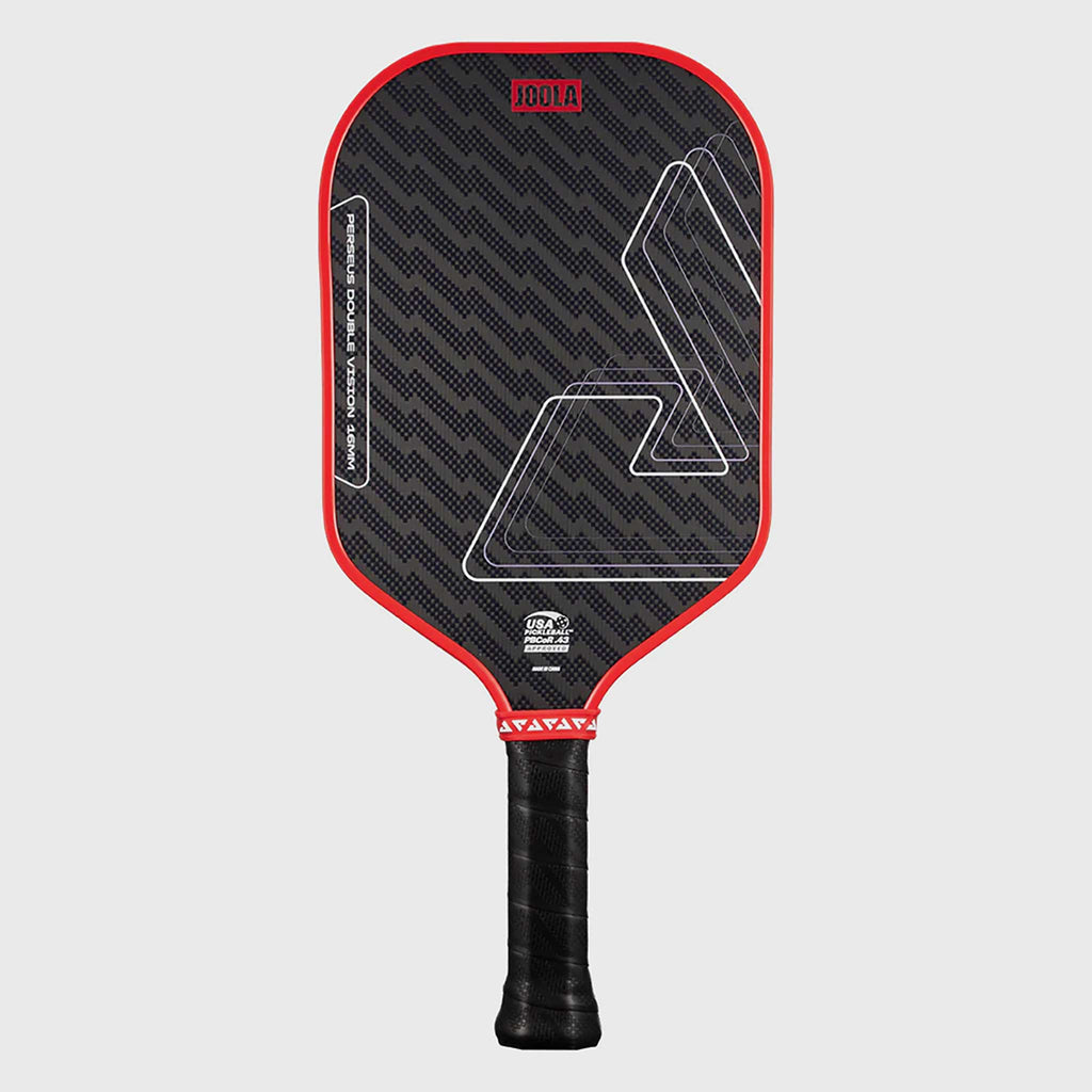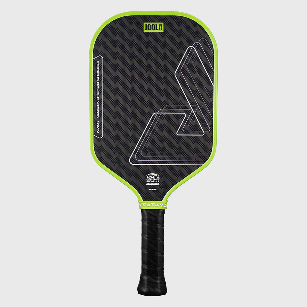 Turn your power on with the JOOLA Perseus Double Vision 16mm! This pickleball paddle builds on the powerful shape by maximizing consistency, control and feel. Swing with pinpoint control thanks to the soft yet durable Aramid Surface. Enjoy long-lasting comfort and reduced fatigue from the vibration-dampening SLK Film. Thermoforming in the handle and neck adds stability and flexibility, translating impact into effortless power when it matters most. Whether you're a weekend warrior or a rising competitor, the JOOLA Perseus Double Vision 16mm puts the power in your hands!