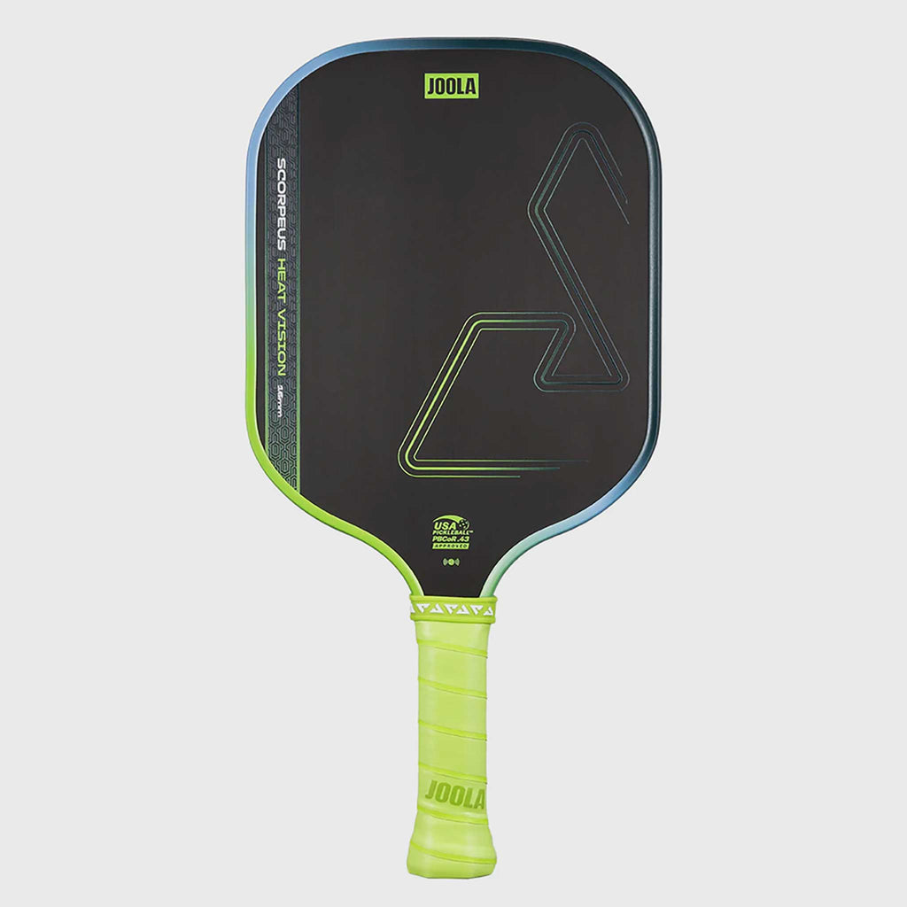 Play your defensive game with the JOOLA Scorpeus Heat Vision 16mm! This pickleball paddle is a versatile weapon for players who excel in fast-paced battles at the net. Enjoy long-lasting comfort and reduced fatigue from the vibration-dampening SLK Film. Thermoforming in the handle and neck adds stability and flexibility, translating impact into effortless power when it matters most. Whether you're a weekend warrior or a rising competitor, the JOOLA Scorpeus Heat Vision 16mm guards every inch of the court!