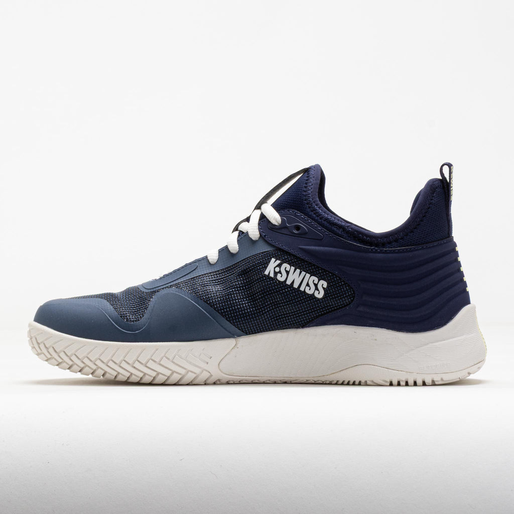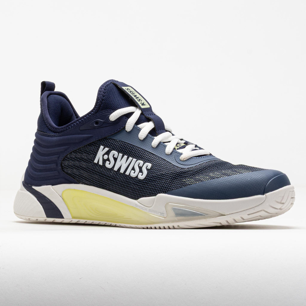 Compete at your peak in the K-Swiss Hypercourt Pinnacle. Featuring a unique carbon fiber plate designed for tennis-specific movements, this court shoe increases your edge during the match. Durawrap X technology offers drag protection in high-wear areas, ensuring smooth and agile slides on the court. Get a boost from the Shock Spring inner foam unit on the forefoot. The L.P.S.C. system provides lateral support, while the DragGuard 7.0 outsole offers superior traction on any surface. Built for competitive tennis, the K-Swiss Hypercourt Pinnacle keeps you one step ahead of your opponents!