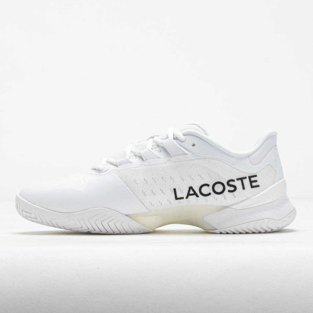 Upper: Lightweight, hard-wearing mesh upper with PiqueWeave technology for breathability and a secure fit. Molded rubber toe caps add protection during slides and drags. TPU heel counter improves shock absorption. Lacoste branding on the tongue and midsection adds signature style.