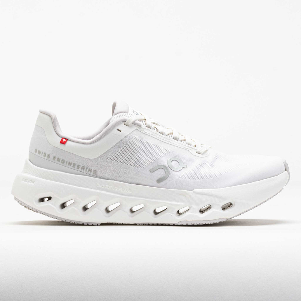 Launch into lift-off with the On Cloudsurfer Next! This neutral running shoe leads smooth strides during your daily miles. Enjoy foot-hugging comfort at high speeds in the race-day-inspired upper. Feel soft landings and smooth transitions on the CloudTec Phase® and Helion™ superfoam midsole. The forefoot rocker design delivers powerful push-offs. If you want comfort with a kick of energy return, choose the On Cloudsurfer Next!