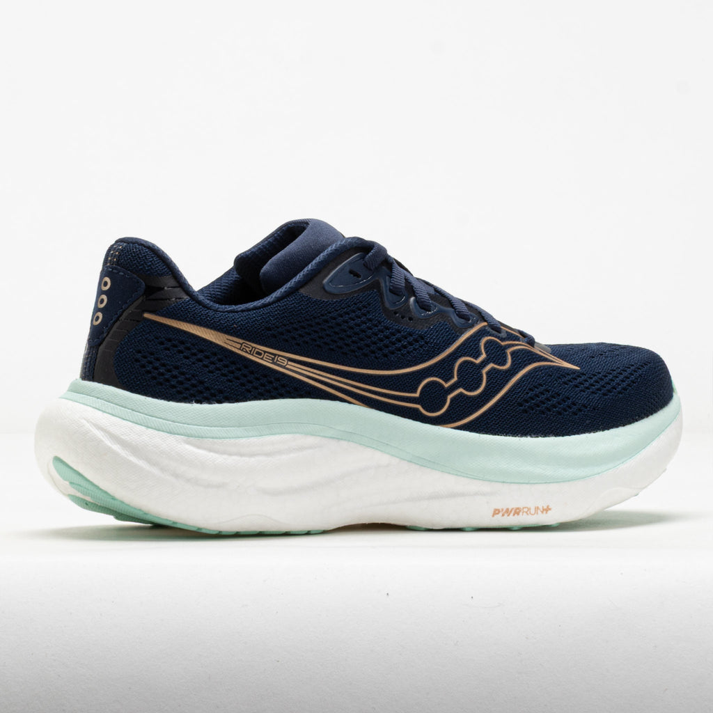 Comfort and versatility combine in the Saucony Ride 19! This do-it-all neutral trainer is lighter, softer and more responsive than its predecessor. Enjoy smooth and energetic strides on the full-length PWRRUN+ foam midsole. Stay cool while you cruise in the breathable engineered mesh upper, while the heel collar adds next-level comfort. Extra rubber on the outsole adds durability, while flex grooves enable smooth transitions. Whether you're running miles or errands, the Saucony Ride 19 keeps you comfortable wherever the day takes you!