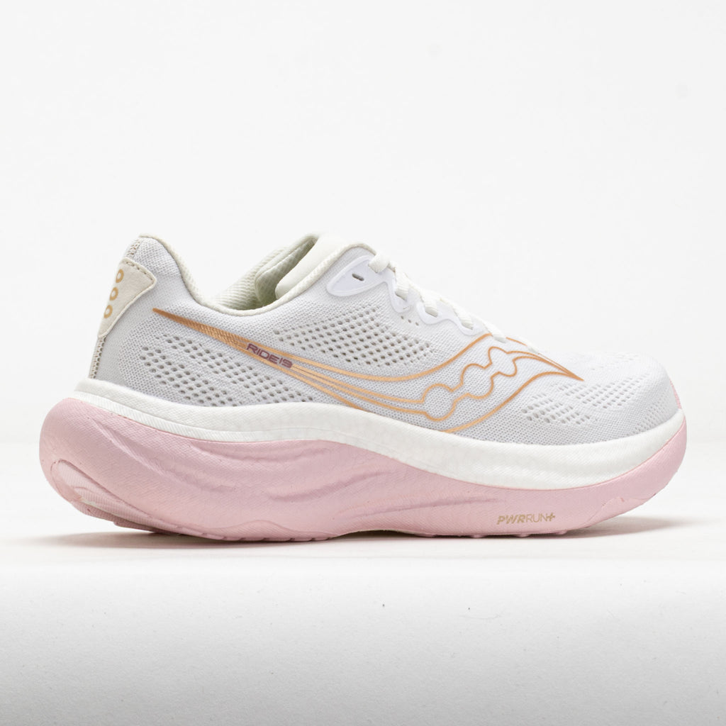 Comfort and versatility combine in the Saucony Ride 19! This do-it-all neutral trainer is lighter, softer and more responsive than its predecessor. Enjoy smooth and energetic strides on the full-length PWRRUN+ foam midsole. Stay cool while you cruise in the breathable engineered mesh upper, while the heel collar adds next-level comfort. Extra rubber on the outsole adds durability, while flex grooves enable smooth transitions. Whether you're running miles or errands, the Saucony Ride 19 keeps you comfortable wherever the day takes you!