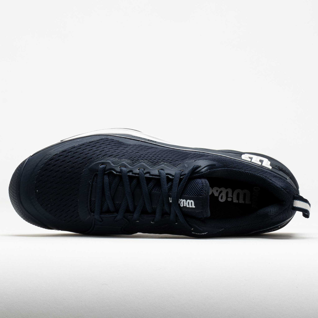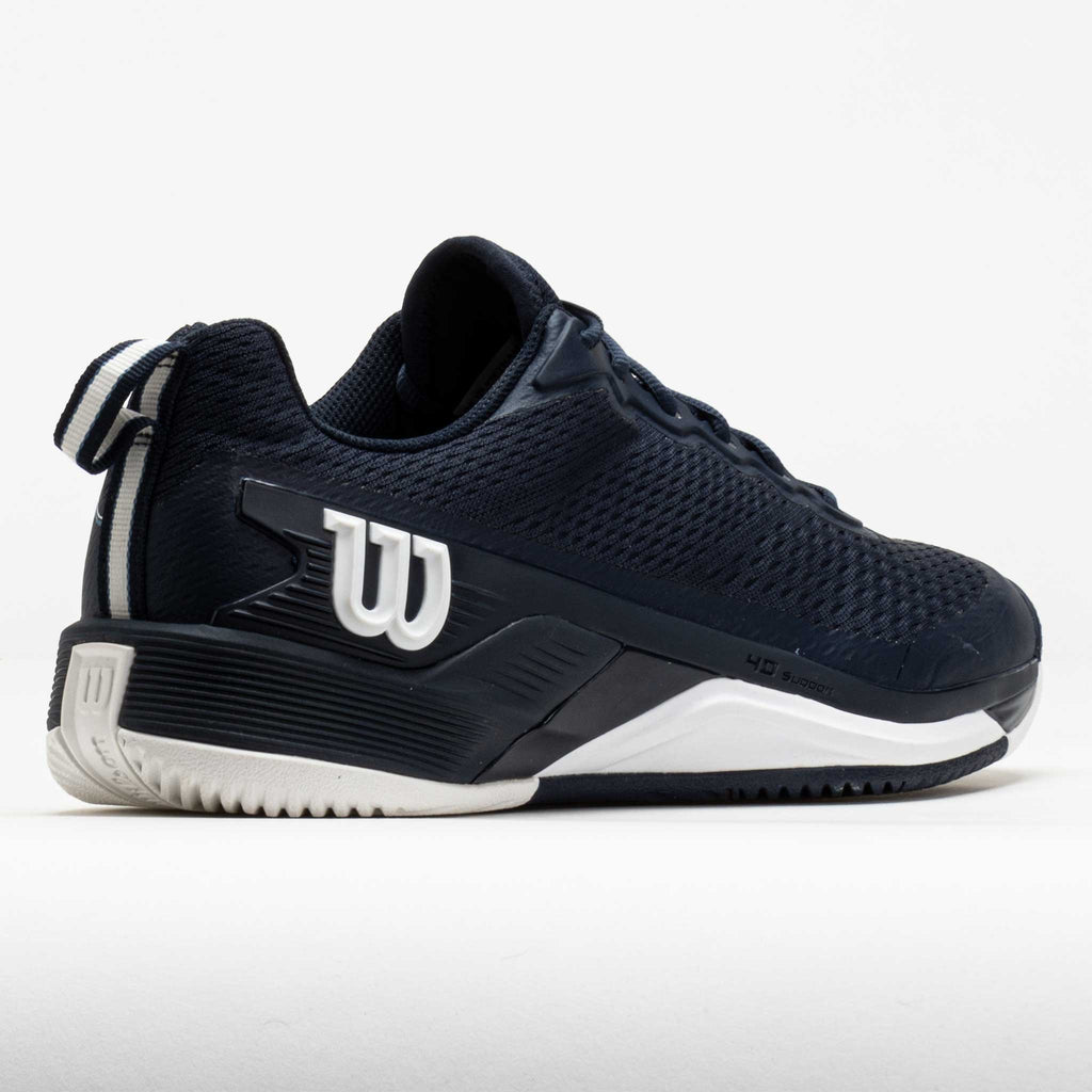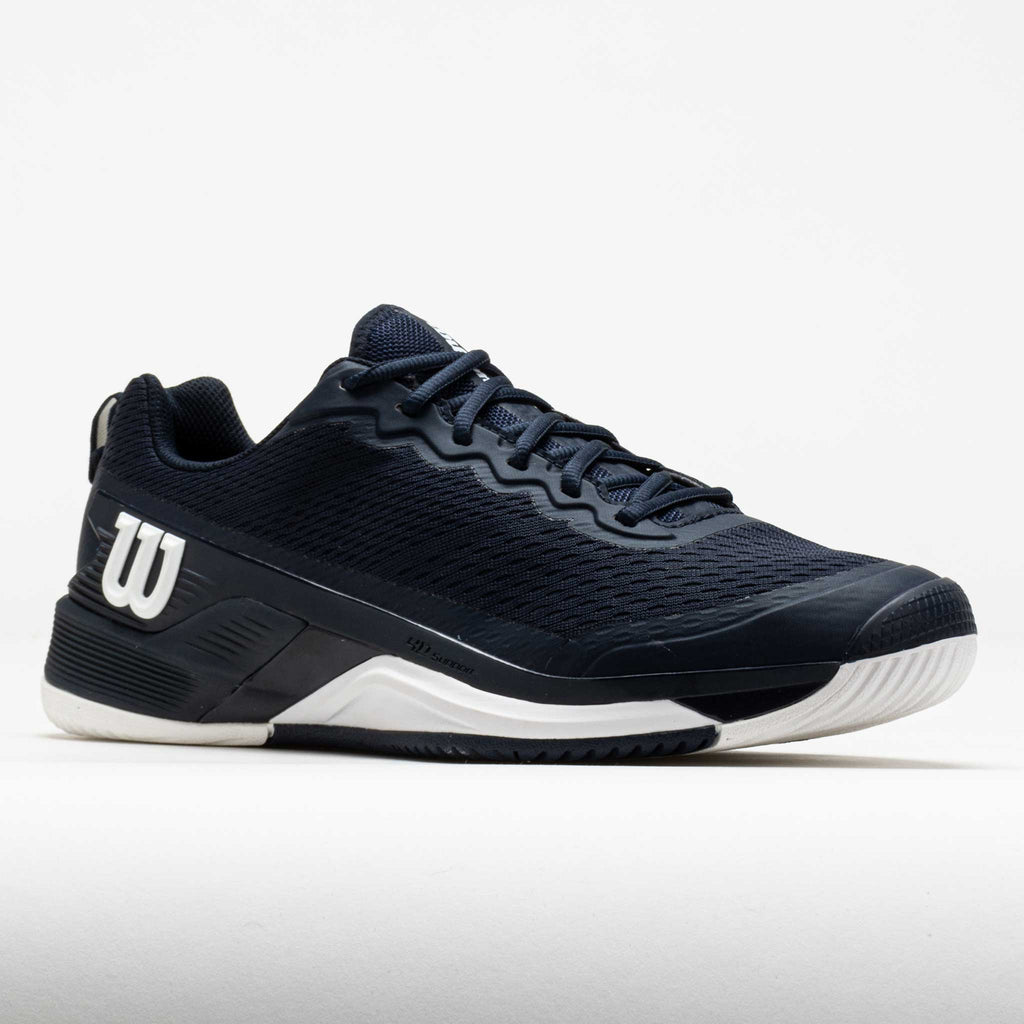 Harness your power on the court in the Wilson Rush Pro 4.5! Continuing the evolution of Wilson's best-selling franchise, the Rush Pro 4.5 builds on previous version with new upgrades that improve breathability, support and abrasion resistance. The engineered mesh upper features a graduated pattern, with a larger hole mesh toward the front to promote airflow and a tighter mesh toward the heel for support. A larger, integrated medial mud guard provides all-around protection and support, while the enlarged rubber drag pad on the lateral side is extra thick to resist abrasion and anatomically shaped to follow the foot's profile. The Lightweight Energy Cell EVA foam under the forefoot provides cushioning on impact, then responds to help you spring back into position. Sleek, durable and providing multidirectional support, the Wilson Rush Pro 4.5 puts your game on a great foundation, whatever the playing surface.