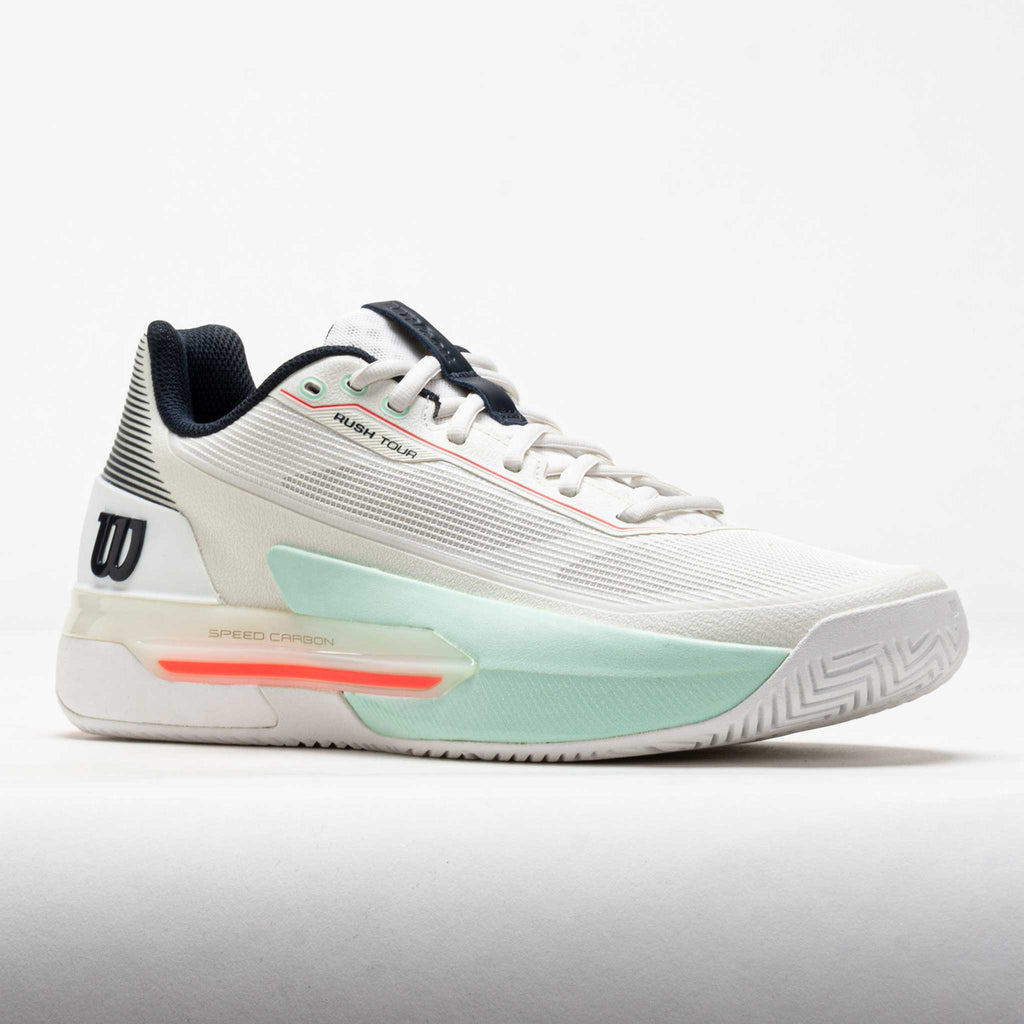 Accelerate your game in the Wilson Rush Tour 5! This tennis shoe combines agile technology with durable materials to support your relentless hustle. Cut, stop, and change direction on a dime with the Dual Axis Speed Carbon Chassis and EndoFit Midfoot Support. Stay one step ahead as the Pebax midsole powers explosive acceleration and quick recovery. The light and breathable Gammaweave mesh upper keeps air flowing point after point. Finished with a Duralast rubber outsole, the Wilson Rush Pro Tour 5 provides relentless durability to support your aggressive grind!