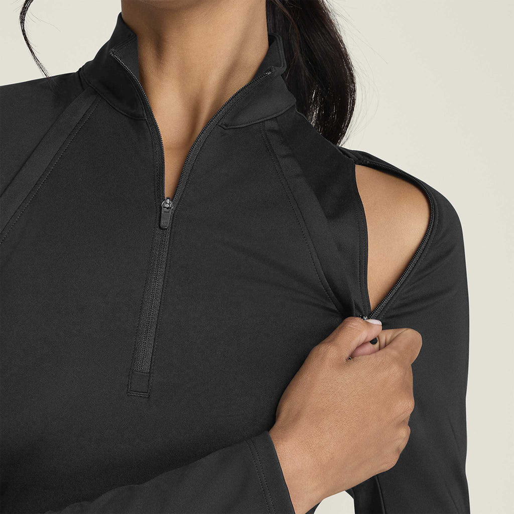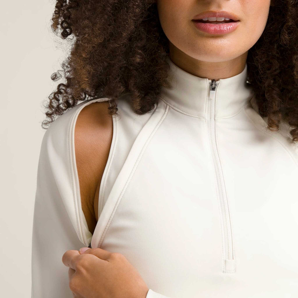 - Half zip construction for adjustable breathability.
